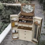 Die Designer Kommode Bombay aus dem Hause Alivar ist ein Eyecatcher in jedem Raum. Aufgrund der Aufmachung wirkt die Kommode direkt auf den ersten Blick sehr geheimnisvoll und spannend. Das Team von Alivar hat sich mit der Kommode etwas ganz Spezielles ausgedacht, welches viele Überraschungen mit sich bringt. Öffnen Sie die Designer Kommode, kommen ein großer Spiegel und ein ausziehbares Regal zum Vorschein. Zudem gibt es kleine Lagerregale, Uhren- und Schmuckhalter und Haken, die zum Aufhängen von Gürteln und anderen Utensilien geeignet sind. In der Kommode finden so viele Dinge einen optimalen und guten Platz.