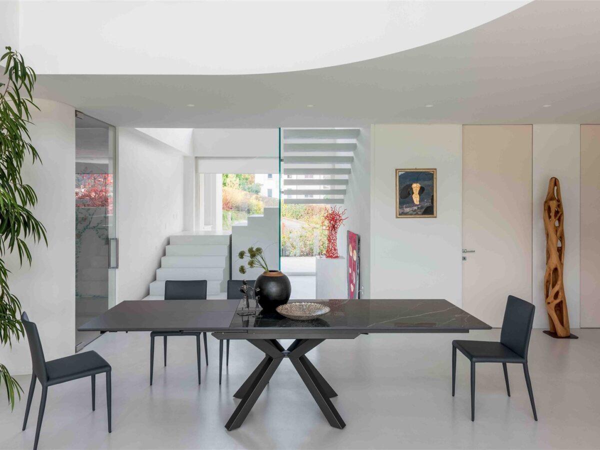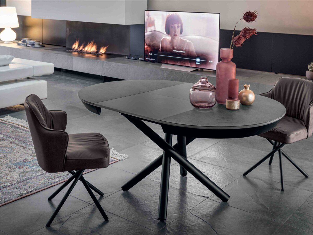 Während die verwandelbaren Couchtische das Aushängeschild der Marke sind, umfasst die Kollektion weitaus mehr innovative Lösungen für moderne Wohnbedürfnisse. Ausziehbare Konsolen wie die berühmte “Davinci” starten bei schlanken 40 Zentimetern Tiefe und erreichen ausgezogen beeindruckende drei Meter Länge. Damit schaffen sie Platz für festliche Tafeln mit bis zu zwölf Personen, ohne permanent wertvollen Wohnraum zu blockieren. Diese Konsolen sind wahre Raumwunder: Tagsüber dienen sie als elegante Ablage im Flur oder Wohnzimmer, abends verwandeln sie sich in den Mittelpunkt geselliger Runden. Der patentierte Teleskopmechanismus aus Aluminium sorgt für eine gleichmäßige und stabile Ausziehbewegung, während zusätzliche Stützbeine für die nötige Stabilität auch bei voller Beladung sorgen.