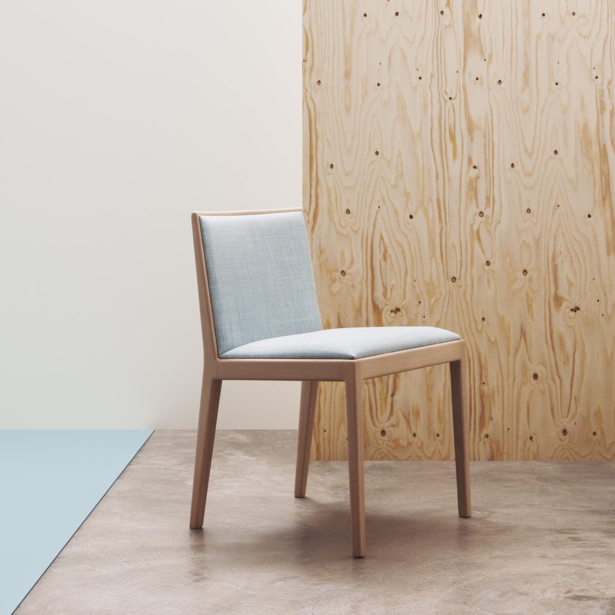- Scandi Dining: heller Holzstuhl, weiche Texturen, reduziertes Tisch-Set-up.