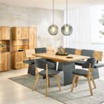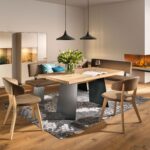 Ein Beispiel für die durchdachte Funktionalität ist der Puro-Auszugstisch, der mit wenigen Handgriffen erweitert werden kann und so Platz für gemeinsames Essen und gesellige Runden bietet. Die Bänke lassen sich als freistehende Elemente oder als Eckbank konfigurieren. Kombinationen aus Sideboards, Schränken und Sitzmöglichkeiten schaffen praktisch nutzbare Stauraum- und Wohnlandschaften.