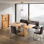 Sie suchen einen Esstisch oder Konferenztisch für ein kleineres Zimmer oder möchten den Tisch mit einer Gruppe von Stühlen im Appartement positionieren? Mit Metro von Anrei haben Sie das ganze Spektrum an Möglichkeiten, die Größe und frei nach Ihrem Bedarf zu wählen und sich optional für ein Modell mit Ausziehfunktion zu entscheiden. Perfekt für jeden Empfang und größere Besucheranzahlen gerüstet sind Sie, wenn Sie der neuen Designphilosophie von Anrei folgen und den Tisch Metro in ausziehbarer Ausführung wählen. Mit einer individuellen Bestuhlung schaffen Sie einen Lieblingsplatz, der nicht nur zum Essen oder für Besprechungen, sondern auch zur Zusammenführung der Familie einlädt. In großen offenen Wohnräumen mit integrierter Küche oder in anderen Räumlichkeiten mit viel Platz setzen Sie durch den Tisch Metro des Herstellers Anrei einen Akzent, der sofort ins Gespräch führt und Ihre Orientierung auf Luxus, natürlichen Charme und kreative Designs aufzeigt. Das massive Holz der Tischplatte begeistert neben der gemaserten Optik durch seine Haptik, die Ihre Finger automatisch über die Oberfläche gleiten und ein Stück Natur in Ihrem Zuhause wahrnehmen lässt.