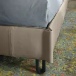 Getragen wird Big Night von schlanken Metallfüßen, die dem Bett optisch Leichtigkeit geben. Das Bett wirkt dadurch nicht massiv, sondern elegant schwebend. Die Kombination aus weichen Polsterflächen und kühlem Metall schafft genau den modernen Kontrast, der in vielen aktuellen Schlafzimmerplanungen gewünscht ist.