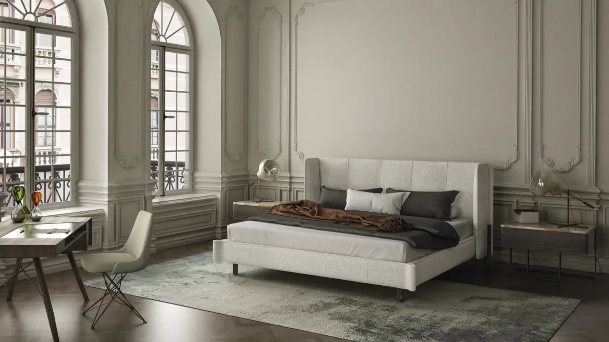 Das Bett Big Night von Arketipo ist ein markantes Designerbett für alle, die im Schlafzimmer eine klare, moderne und zugleich elegante Formensprache wünschen. Der Entwurf setzt das Bett als Mittelpunkt des Raumes in Szene: straffe Polsterflächen, ein umlaufend gepolsterter Rahmen und ein charakterstarkes, seitlich gefaltetes Kopfteil erzeugen den Eindruck von handwerklicher Präzision und italienischem Stilbewusstsein.