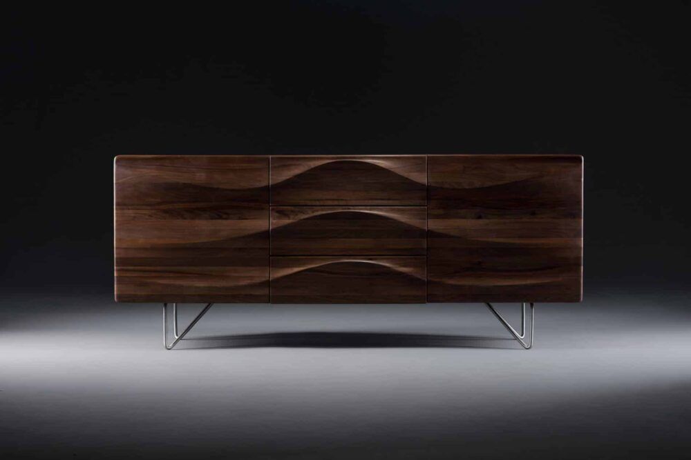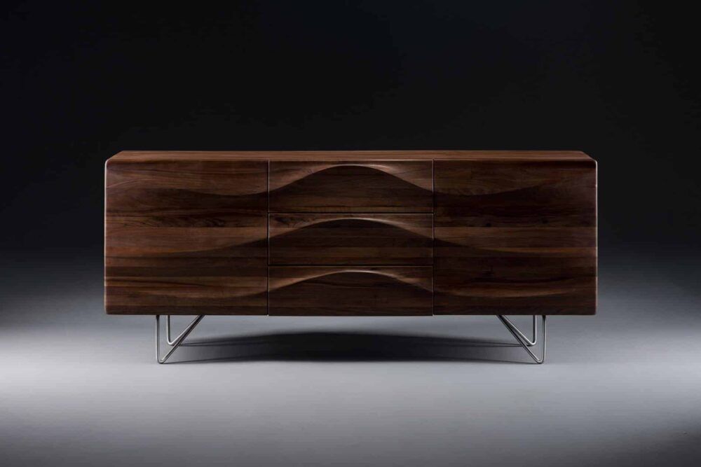 Das Sideboard Lasta von Artisan lässt immer wieder Staunen aufkommen. Nicht nur die Wellenlinien sind dafür verantwortlich. Zu erwähnen ist auch die Grifflosigkeit. Möchten Sie die Türen und Schubfächer der Kommode öffnen, müssen Sie nur leichten Druck auf die entsprechende Front ausüben. Schon öffnet sich das Sideboard wie von selbst. Solch eine Kommode könnte sich im Schlafzimmer gut anbieten. Aber auch im Wohnzimmer ist es eine schöne Idee. Dort könnte es als TV-Sideboard in Funktion genommen werden. Übrigens haben Sie auch die Wahl hinsichtlich der Holzarten. Ahorn, Eiche, Kirsche, Ulme, europäische Walnuss, Esche und amerikanische Walnuss stehen zur Disposition. Falls Sie schon Möbel im Raum stehen haben, können Sie so die passende Holzart auswählen, damit letztendlich das ganze Mobiliar miteinander harmoniert und ein schönes Bild abgibt.
