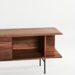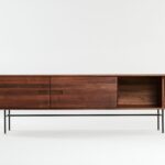 Aus dem Hause Artisan gibt es die Designer Kommode Leno. Die schöne Kommode wurde von dem Designer Michael Schneider konzipiert. Es ist ein Möbelstück, welches einen modernen Stil mit sich bringt, ein Plus an Feinfühligkeit beinhaltet und einfach makellos in der Verarbeitung ist. Kombiniert wird der eindrucksvolle Sideboard-Korpus aus Holz mit einem minimalistischen und filigranen Untergestell. Das Gestell des Sideboards aus Holz ist sehr zurückhaltend gestaltet, sodass der Korpus den Raum in Gänze erfüllen kann. Im Wohnzimmer bietet sich die Kommode hervorragend als TV-Lowboard oder TV-Sideboard an. Aber vielleicht soll es auch im Schlafzimmer platziert werden, was natürlich auch kein Problem ist.