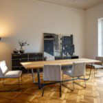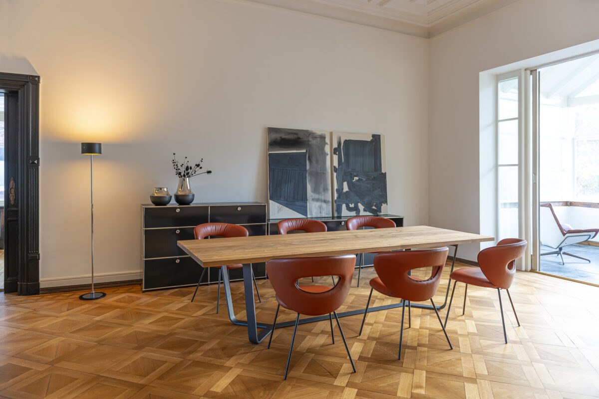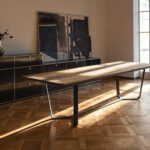 Der Axis verbindet eine klare, geometrische Formensprache mit natürlichen Materialien und handwerklicher Präzision. Dank seiner hochwertigen Verarbeitung eignet sich der Tisch sowohl als repräsentativer Essplatz für Familie und Gäste als auch als stilvolles Möbelstück in offenen Wohnräumen.