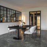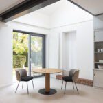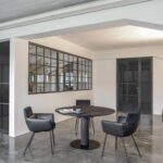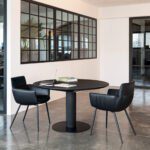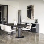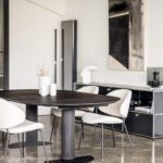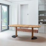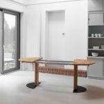 Neben dem klassischen Domino bietet Asco auch die innovative Variante Domino Plus an. Dieser runde geometrische Esstisch präsentiert sich als cleverer Ausziehtisch, der sich bei Bedarf schnell erweitern lässt. Beidseitig auseinandergezogen und durch bis zu zwei Einlegeplatten erweitert, verwandelt er sich in einen grundsoliden ovalen Esstisch auf zweigeteilter Massivholzsäule. Diese geniale Konstruktion macht den Domino Plus zum perfekten Begleiter für alle, die flexibel auf unterschiedliche Gästezahlen reagieren möchten. Die geteilte Säule und Bodenplatte gewährleisten auch in ausgezogenem Zustand höchste Stabilität. Mit seinen kontrastreichen Materialien und der klaren Form überzeugt der Domino Plus als funktionales Meisterwerk, das keine Kompromisse zwischen Design und Praktikabilität macht.