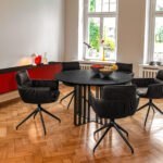 Die klare Linienführung und die vielfältige Materialauswahl machen den Lamello Tisch zu einem einzigartigen und ausdrucksstarken Element für unterschiedlichste Wohnkonzepte. Ob im minimalistischen Loft, im skandinavisch inspirierten Esszimmer oder im klassisch-modernen Ambiente – der Lamello fügt sich harmonisch ein und setzt gleichzeitig einen markanten Akzent. Seine offene und leichte Erscheinung lässt Räume größer wirken und schafft eine einladende Atmosphäre, die zum Verweilen einlädt. Die durchlässige Struktur der Stahlwangen ermöglicht interessante Lichtspiele und verleiht dem Raum eine besondere Dynamik. Gleichzeitig bietet die massive Tischplatte die nötige Stabilität und Funktionalität für den täglichen Gebrauch, sei es beim gemeinsamen Essen, Arbeiten oder geselligen Beisammensein.