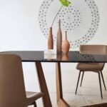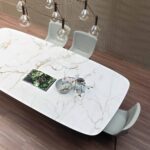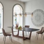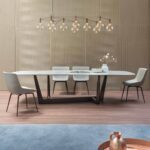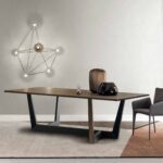 Der Designer Tisch Art von Bonaldo gehört zu den eindrucksvollen und ausgefallenen Esstischen überhaupt. Das Tischgestell des Tisches fällt direkt auf Anhieb ins Auge. Bei diesem Tisch sticht die Basis direkt ins Auge. Hierbei handelt es sich um ein trapezförmiges Gestell aus Metall, welches sich diagonal zur Platte einfindet. Dank der diagonalen Anordnung der Basis ist ganz einfach auch mehr Platz nutzbar. Es stören keine Tischbeine, sodass die ein oder andere Person mehr einen Platz findet. Der Tisch scheint auch fast plastisch zu wirken, bringt aber auch eine gewisse Leichtigkeit mit sich. Man kann sagen, dass der Esstisch alles hat, was man sich wünschen kann.