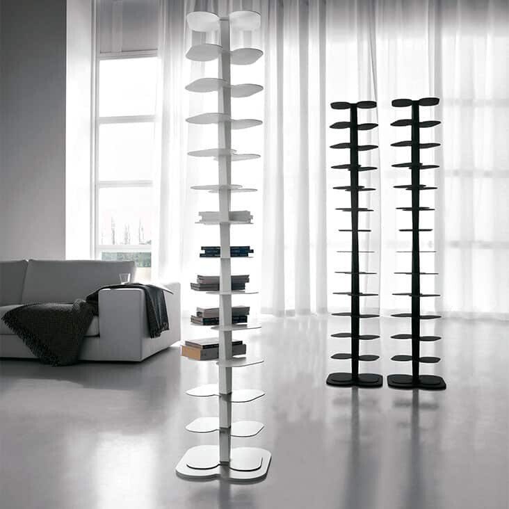 Charakteristisch für das Regal DNA ist seine vertikale, modulare Anordnung der Regalböden. Die Konstruktion wirkt leicht und dynamisch, gleichzeitig aber stabil und durchdacht. Durch die offene Gestaltung entsteht eine luftige Optik, die Räume nicht beschwert, sondern strukturiert. Besonders in modernen Wohnkonzepten mit klarer Linienführung entfaltet das Regal von Cattelan Italia seine volle Wirkung.