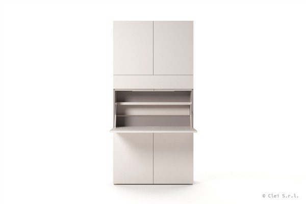 Die Küchen von Clei bestehen aus wasserabweisenden Materialien, was für eine lange Haltbarkeit steht. Auch die Arbeitsplatte und die integrierte Tischplatte können sich sehen lassen. Diese Platten aus Fenix sind kratzfest. Entscheiden Sie sich für solch eine platzsparende und praktische Küche von Clei, können Sie nichts falschmachen. Wir von Design-Kiste.de beraten Sie gerne und zeigen Ihnen die Möglichkeiten auf. Sie könnten auch noch andere Möbel für die Küche oder einen anderen Raum gebrauchen? Der Hersteller Clei aus Italien bietet Ihnen auch noch viele weitere Verwandlungsmöbel an. So ist es beispielsweise möglich, sich für den Klapptisch Wally zu entscheiden, der Regal und Tischplatte in einem Möbelstück darstellt. Oder auch Schrankbetten und Etagen-Betten werden zur Disposition gestellt. Informieren Sie sich jetzt über die hochwertigen und besonderen Design-Möbel wie Küchen, Betten und Schränke von Clei bei Design-Kiste.de.