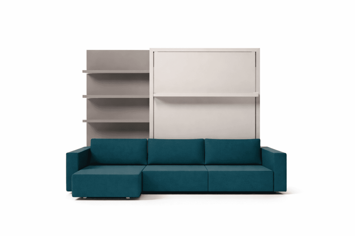 Im Zentrum der Swing Verwandlungsmöbel steht das clevere Wandbett. Durch einfaches Umklappen verwandelt sich eine stilvolle Regalwand in ein gemütliches Bett. Ideal für kleine Wohnungen, Gästezimmer oder Büros, in denen jeder Quadratmeter zählt. Das Wandbett von Clei bietet nicht nur eine komfortable Schlafmöglichkeit, sondern auch praktischen Stauraum.