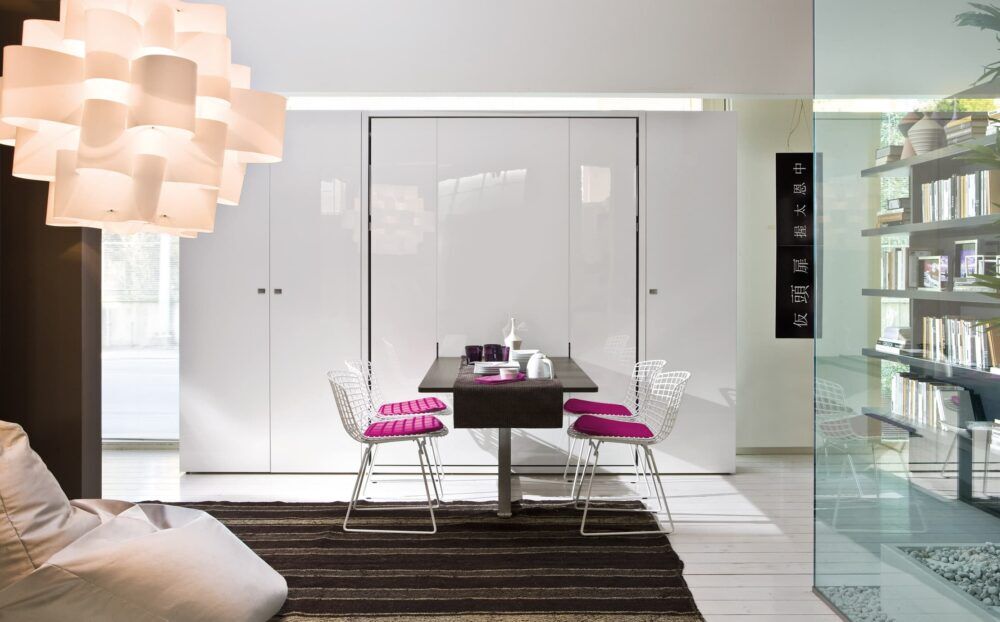 Erleben Sie die Revolution des Raumsparens durch das Clei Ulisse Dining Wandbett mit integriertem Esstisch