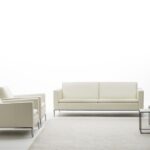 Das hochwertige Sofaprogramm DS 4 wird von einer Schlichtheit und einer Eleganz geprägt. Bei diesem Modell spielen die Ästhetik und die Inspiration eine große Rolle. In diesem Sofaprogramm werden alle wichtigen Punkte wiedergespiegelt. Die Materialien führen im Prinzip eine Art Wechselspiel durch. Die ganze Harmonie wiegt sich zwischen dem Rahmen und dem weichen Leder hin und her. Es passt einfach alles perfekt zusammen und lässt erahnen, welche Mühe sich der Designer gegeben hat. Gegenüber dem Sofa DS 5 finden Sie an diesem Modell eine erhöhte Rückenlehne, die für noch mehr Bequemlichkeit sorgt. Die Designerin hat sich zu dem hervorragenden Möbelstück geäußert und meint, dass es nicht der Reiz ist, immer wieder neue Formen zu präsentieren, sondern den Sitzmöbeln ganz einfach eine absolut klare Identität zu geben. Ganz nach Wunsch können Sie sich für ein hochglanz, perlgrau verchromten oder alufarbig beschichteten Gestell entscheiden. Dank des schlichten Erscheinungsbildes und der atemberaubenden Wirkung fügt sich das de Sede Sofaprogramm DS 4 in jede moderne und stilvolle Wohnlandschaft ein. Wird Ihre neue Sitzecke auch noch mit einem Couchtisch kombiniert, wird die Sitzgelegenheit perfekt komplettiert.
