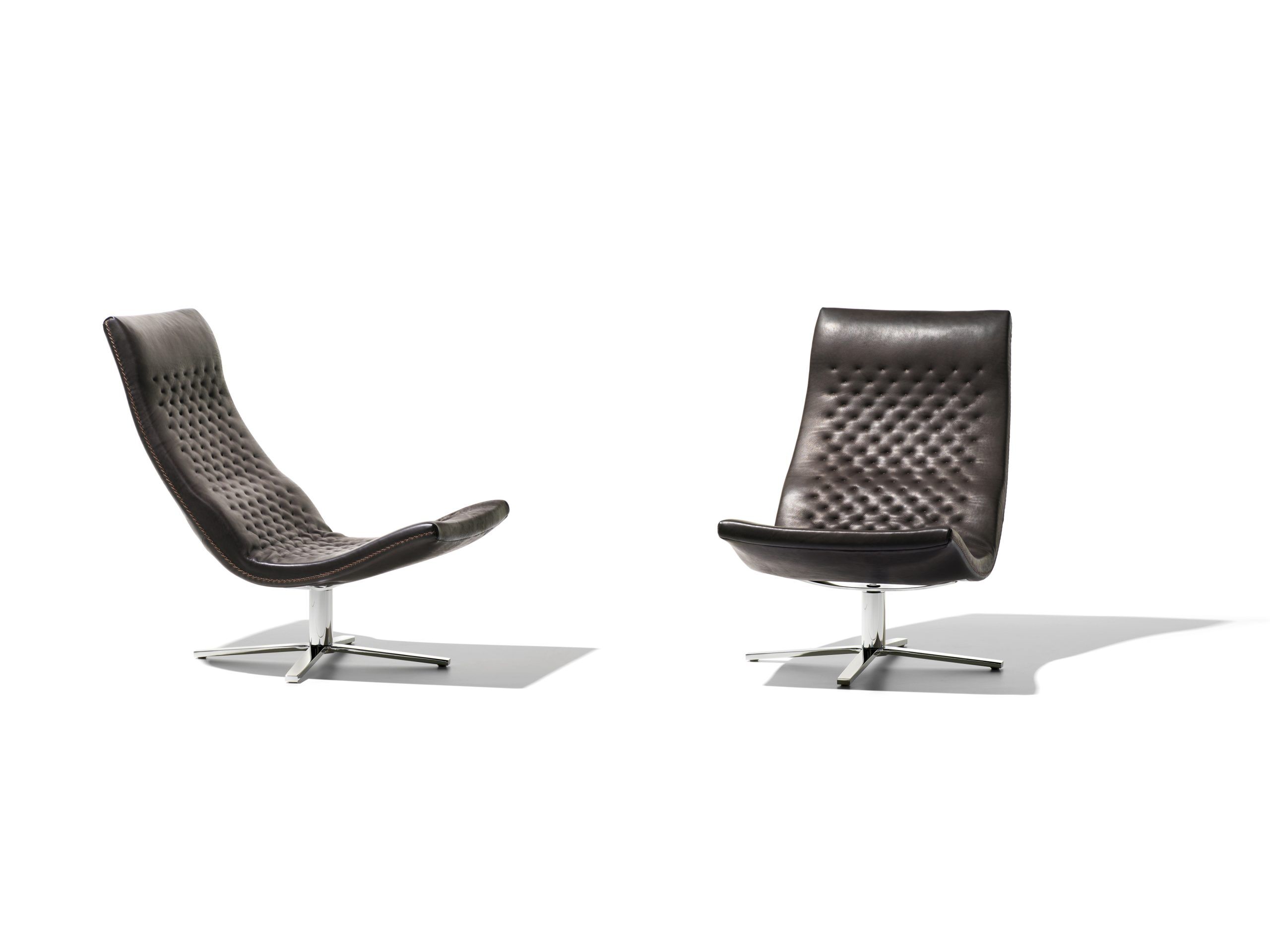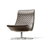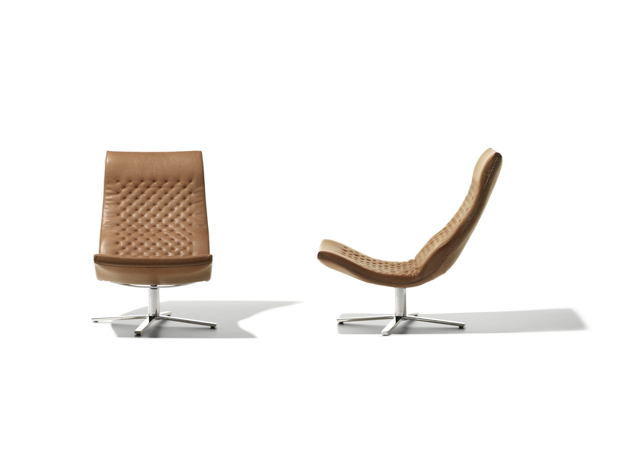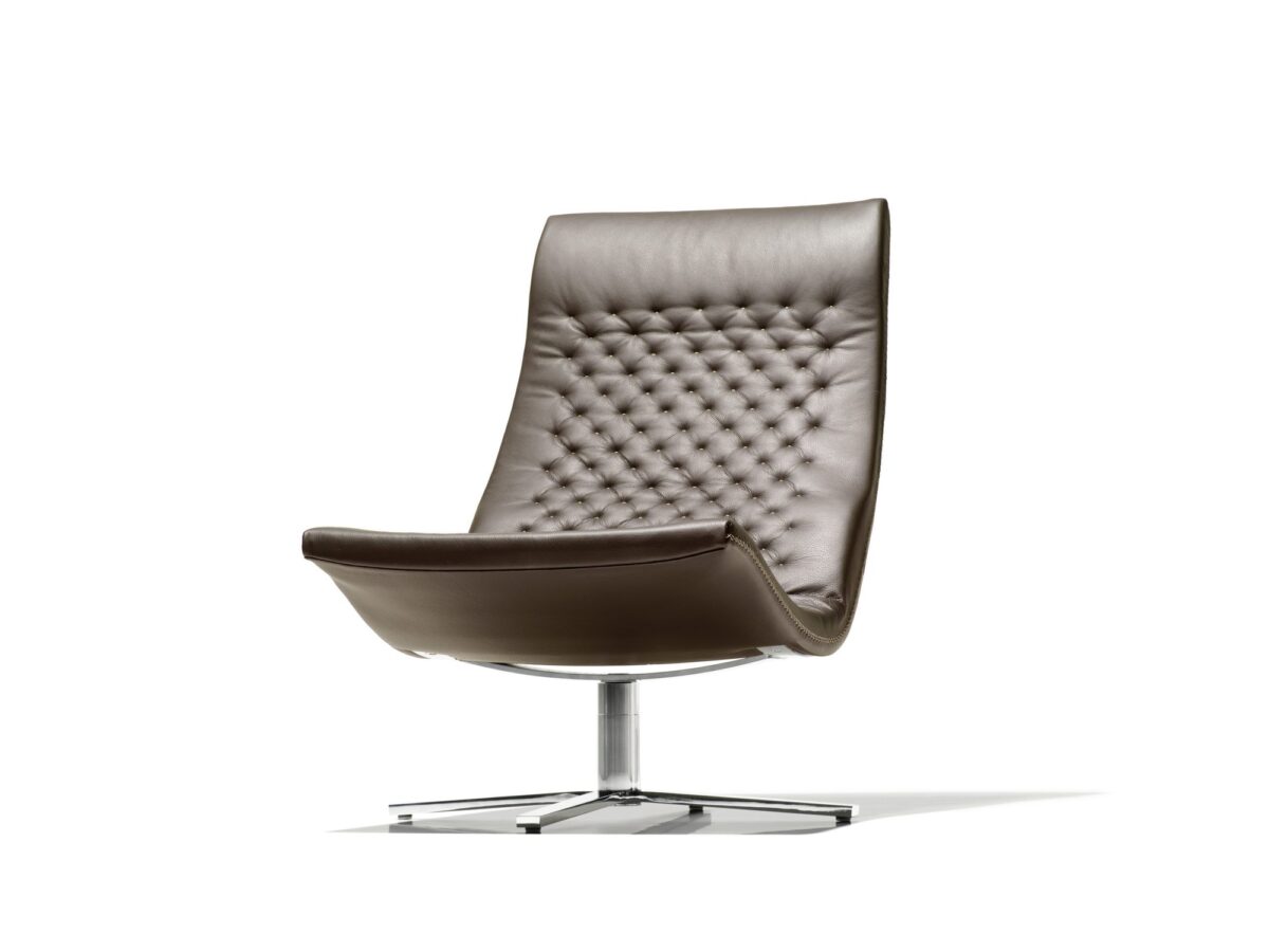 - Drehbar: Der Sessel steht auf einem Hochglanz-Chrom-Viersternfuß und ist um 360° drehbar.