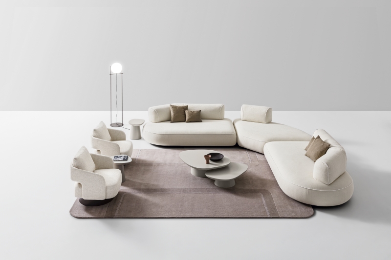 Die Kollektion ist als modulares System gedacht. Es gibt das klassische Isla mit sehr einladender, komfortorientierter Anmutung und die Variante Isla Slim für Kunden, die denselben Look wünschen, aber etwas schlankere Proportionen im Raum brauchen. Beide Varianten lassen sich zu unterschiedlichen Kompositionen planen: