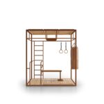 Die Out-Fit besteht aus einer robusten Struktur aus pulverbeschichtetem Aluminium in der Farbe “Rust” und natürlichem Teakholz. Diese Kombination verleiht der Outdoor-Gym nicht nur Stabilität, sondern auch eine ansprechende Ästhetik, die sich harmonisch in verschiedene Umgebungen einfügt.