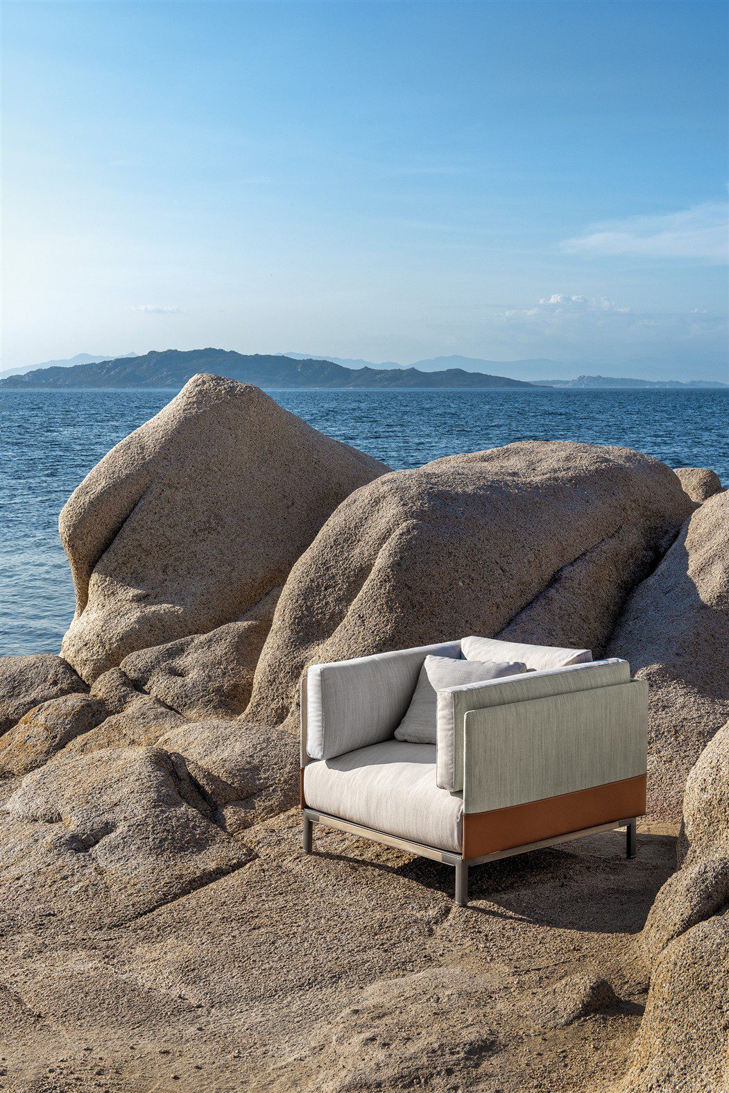 Mit seiner sorgfältigen Auswahl an hochwertigen Materialien bietet das Ethimo Baia Sofa einen unübertroffenen Sitzkomfort. Die Polsterung, gefertigt aus erstklassigen Stoffen, verspricht Langlebigkeit und ist gleichzeitig angenehm auf der Haut. Die Kissen sind so konzipiert, dass sie sowohl Stütze als auch Weichheit bieten, ideal für lange Abende in gemütlicher Runde oder entspannende Stunden allein mit einem guten Buch.