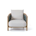 Mit seinen klaren Linien und der harmonischen Materialkombination fügt sich das Sofa nahtlos in verschiedenste Außenbereiche ein – ob Terrasse, Garten oder Lounge-Bereich. Die Kombination aus warmem Holz und modernem Geflecht schafft eine einladende, stilvolle Atmosphäre.
