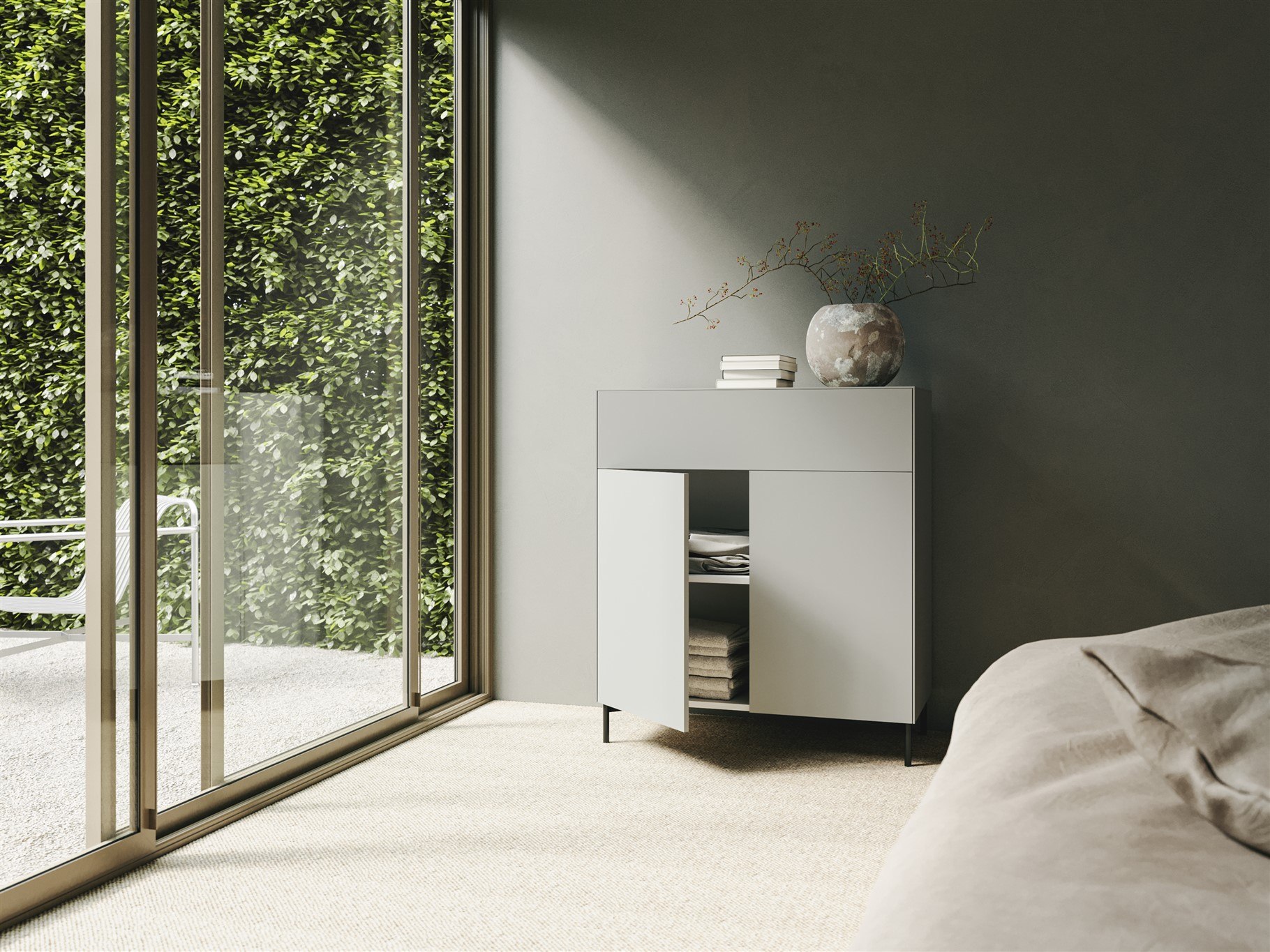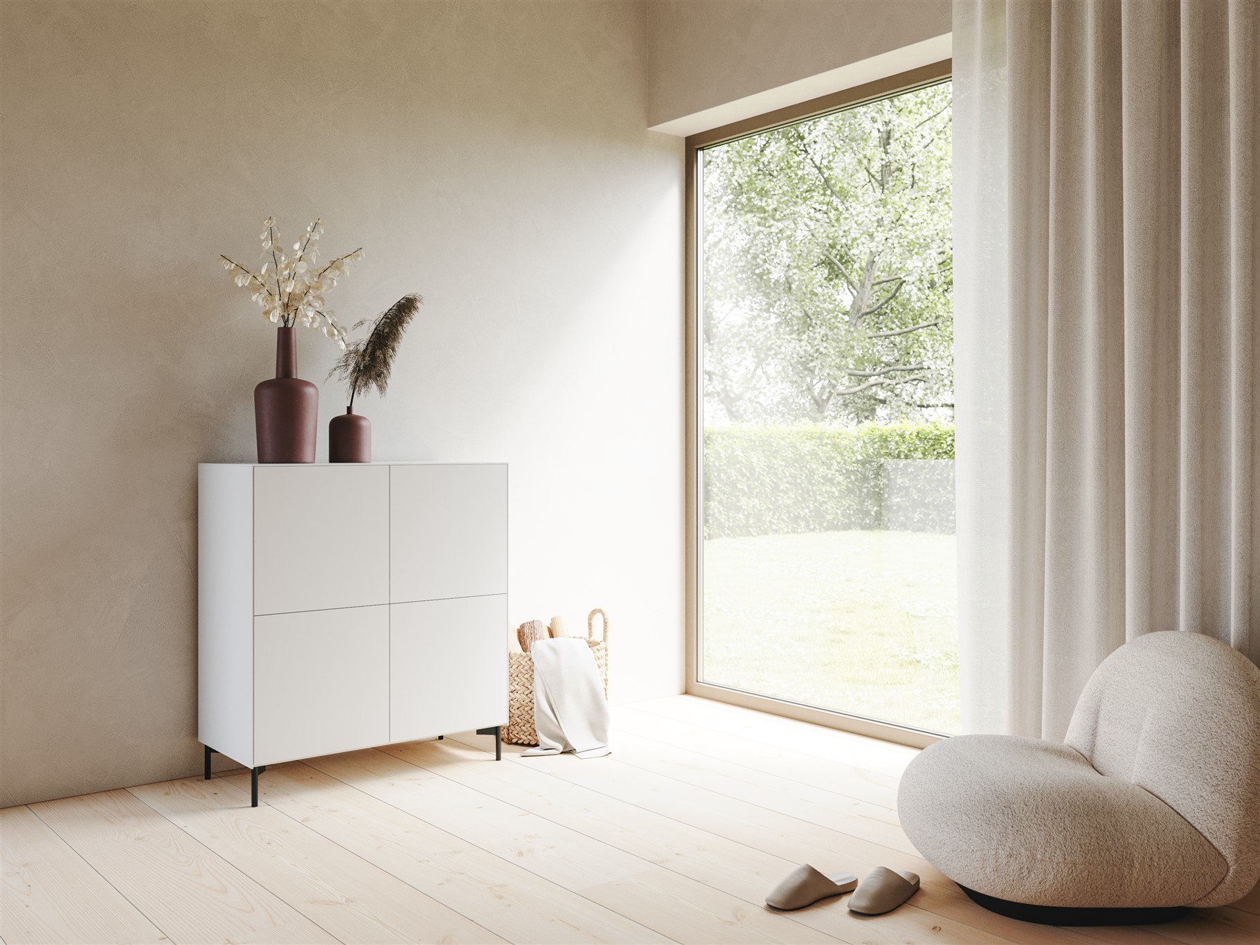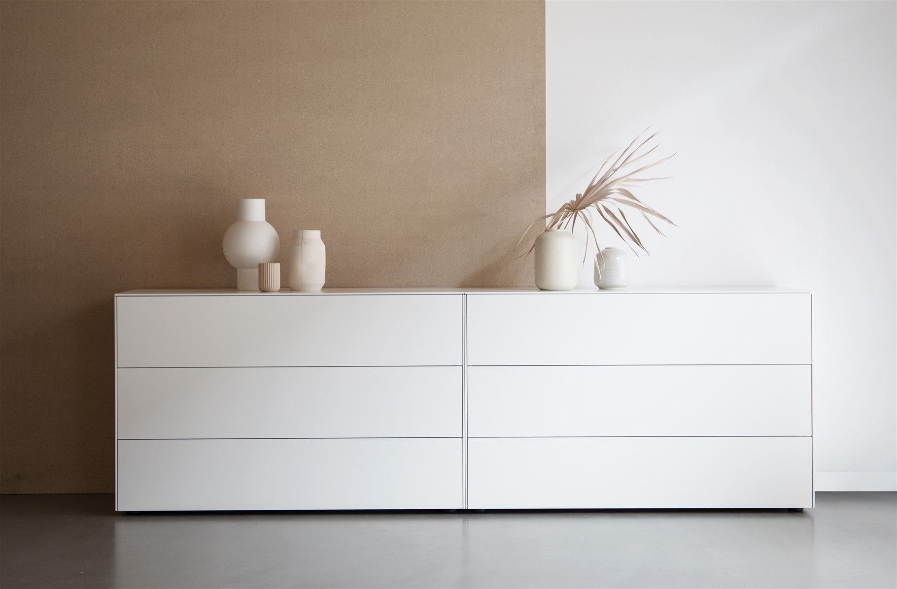 Egal, ob im Wohnzimmer, Esszimmer oder Schlafzimmer – das Sideboard Connect fügt sich harmonisch in jeden Raum ein. Dank seiner neutralen Farbgebung und dem zurückhaltenden Design können Sie es mit verschiedenen Einrichtungsstilen kombinieren. Es dient nicht nur als Stauraum, sondern auch als Designelement, das Ihrem Raum das gewisse Etwas verleiht.