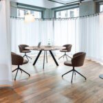 Designer Tisch Barra von Girsberger besteht aus einer massiven Tischplatte aus Massivholz. Diese Tischplatte wird auf einem Gestell aus Flachstahl gehalten. Die Tischbeine wurden schräg angestellt, sodass es an Stabilität nicht mangelt. Der größte Tisch Barra kann eine Tischlänge von 400 cm mit sich bringen. Sie bekommen also einige Leute an den Tisch. Da kann die nächste Feier im Kreise der Familie oder mit Freunden kommen. Dazu bieten sich noch praktische und hochwertige Stühle an, die es auch von Girsberger gibt. Zusammen ergeben Tisch Barra und Stühle ein gutes Bild ab. Ein Barra Tisch rund bietet sich für Ihre Küche oder das Esszimmer an. Vielleicht möchten Sie für das Esszimmer oder den Partyraum einen Tisch auswählen. In dem Fall wäre auch ein ovaler oder rechteckiger Tisch Barra aus Massivholz die Option. Soll es ein Tisch für den Arbeitsbereich werden, gibt es extra die lange Tafel Barra Work, welcher als Konferenztisch gilt und einige Besonderheiten bereithält.