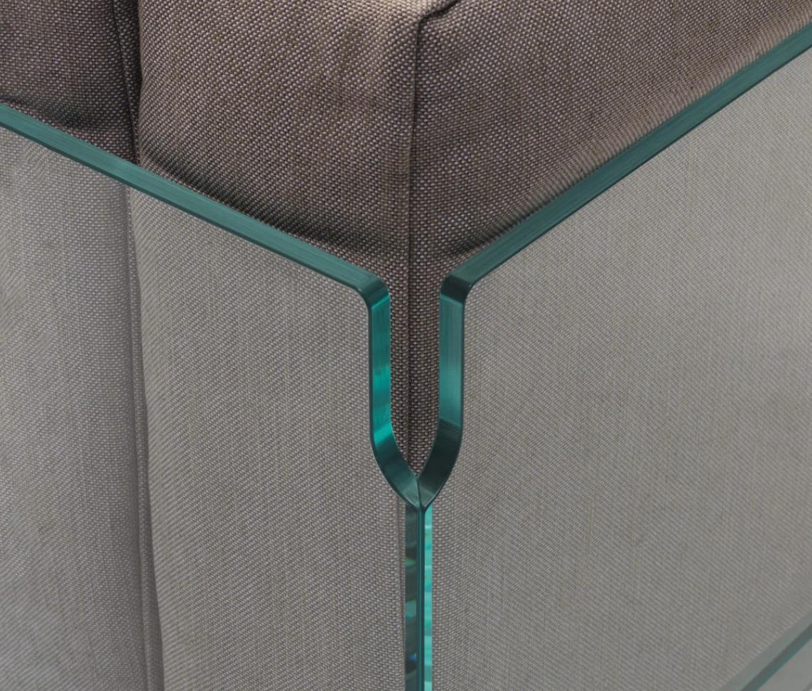 Der Kontrast zwischen der kühlen Präzision des Glases und der einladenden Weichheit der Polster macht den Reiz aus. Die Crystal Lounge bietet eine tiefe, entspannte Sitzposition, die zum Verweilen einlädt: