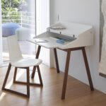 Der Schreibtisch Bureau ist mit einer praktischen Aufklappfunktion versehen. Klappen Sie den Schreibtisch auf, gibt es eine ausziehbare Schreibfläche und ein praktisches Regal. Auch die indirekte Beleuchtung, die integriert ist, kann sich sehen lassen. Die Unterkonstruktion des Schreibtischs ist sehr stabil und wertig, was ebenfalls ein Pluspunkt ist. Der Charme des Schreibtischs lässt die skandinavische Richtung erkennen, die bei diesem Möbelstück eingeschlagen wurde. Entworfen hat es der Künstler Esa Vesmanen aus Finnland. Von daher ist auch klar, woher der skandinavische Touch kommt.
