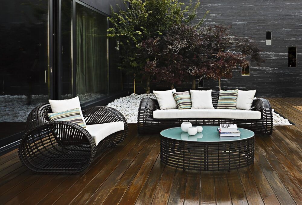 Ein Meisterwerk der Vielseitigkeit: Das Kenneth Cobonpue Lolah Sofa im Außenbereich