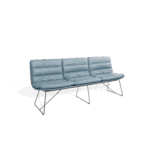 Typisch für die Arva ist die umlaufende Schale, die den Sitz und Rücken optisch zusammenfasst. Dadurch wirkt die Bank sehr aufgeräumt, ohne überflüssige Nähte oder unruhige Linien. Die Polsterung liegt passgenau in dieser Schale und bleibt sicher an ihrem Platz. Das Ergebnis ist ein klares, reduziertes Möbel, das sich hervorragend in moderne Interieurs einfügt und dort einen hochwertigen Akzent setzt.
