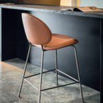 Typisch für die Alvaro-Reihe ist die organische Formgebung. Die Rückenlehne läuft sanft um den Sitz und bildet eine harmonische Einheit. Die sichtbare Nahtführung unterstreicht den hochwertigen Manufakturcharakter und macht den Barhocker sofort wiedererkennbar. Ob vor einer dunklen Kücheninsel, neben Holzfronten oder in einem lichtdurchfluteten Wohnloft – der Barhocker setzt einen eleganten, aber nicht aufdringlichen Akzent.