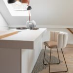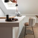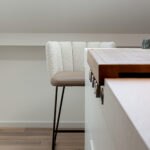Der Gaia Barhocker ist bewusst modern gestaltet und fügt sich sehr gut in geradlinige, grifflose oder hochwertige Designküchen ein.