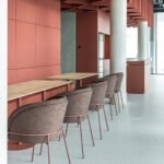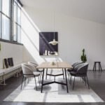 Lunar ist so gestaltet, dass er in beiden Bereichen funktioniert. Die komfortable Polsterung macht ihn ideal für den Essbereich, die klare Formensprache und die hochwertige Verarbeitung eignen sich zudem sehr gut für Büro, Besprechung oder Gastronomie.