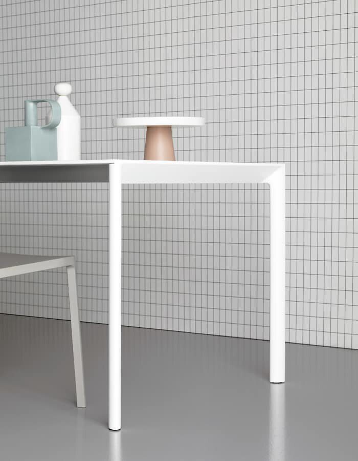 Das Design des Kristalia Maki Tisches zeichnet sich durch seine ausgewogenen Proportionen und abgerundeten Profilkanten aus. Sowohl die Tischplatte als auch die Tischbeine greifen diese sanfte Linienführung auf und sorgen für ein harmonisches Gesamtbild. Die Gestaltung wirkt bewusst reduziert und unterstreicht den Anspruch moderner Designmöbel: klare Form, hochwertige Materialien und langlebige Konstruktion.