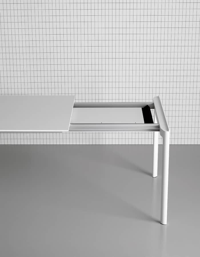 Der Kristalia Maki Esstisch ist in mehreren Größen erhältlich und kann – je nach Ausführung – auch mit Auszugsfunktion ausgestattet sein. Dadurch lässt sich die Tischlänge flexibel erweitern und bietet Platz für zusätzliche Gäste.
