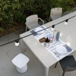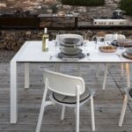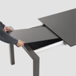 Ob im Außen- oder Innenbereich eingesetzt. Der Tisch Sushi weiß in allen Belangen zu überzeugen. Der verlängerbarer Tisch für den Outdoor-Bereich verfügt über den gleichen Ausziehmechanismus wie das Modell für den Wohnbereiches. Zur Unterbringung der Verlängerungen des Tisches sind Behälter vorgesehen, die aus einem wetterbeständigen und robustem thermogeformten Kunststoff bestehen und Öffnungen für den Abfluss von Regenwasser besitzen. Die Beschläge aus hochwertigem Edelstahl und die Struktur aus Aluminium garantieren eine hohe Haltbarkeit auch bei höchster Belastung durch Wetter- und Umwelteinflüsse. Die schlanken Tische fallen durch ihr exzellentes Design ins Auge eines jeden Designermöbel-Kenners. Die schlichte Eleganz, die perfekten Geraden, die großartige Verarbeitung und die durch seine kühle Glätte fast futuristisch wirkende Ausstrahlung des Tisches Sushi, machen ihn so beliebt und zu etwas ganz Außergewöhnlichem.