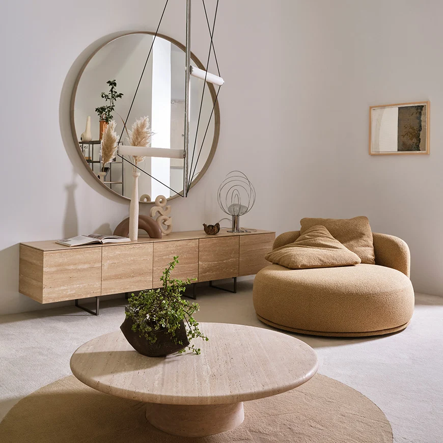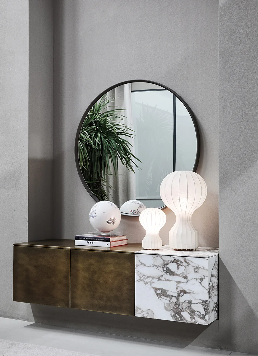 Typisch für Meridiani zeichnet sich das Sideboard Ruben durch präzise Linien, ausgewogene Proportionen und eine ruhige, zeitlose Optik aus. Das Design verzichtet bewusst auf überflüssige Details und setzt stattdessen auf klare Flächen und eine hochwertige Materialwirkung. Dadurch entsteht ein Möbelstück, das langfristig Bestand hat und sich flexibel in bestehende Raumkonzepte integrieren lässt.