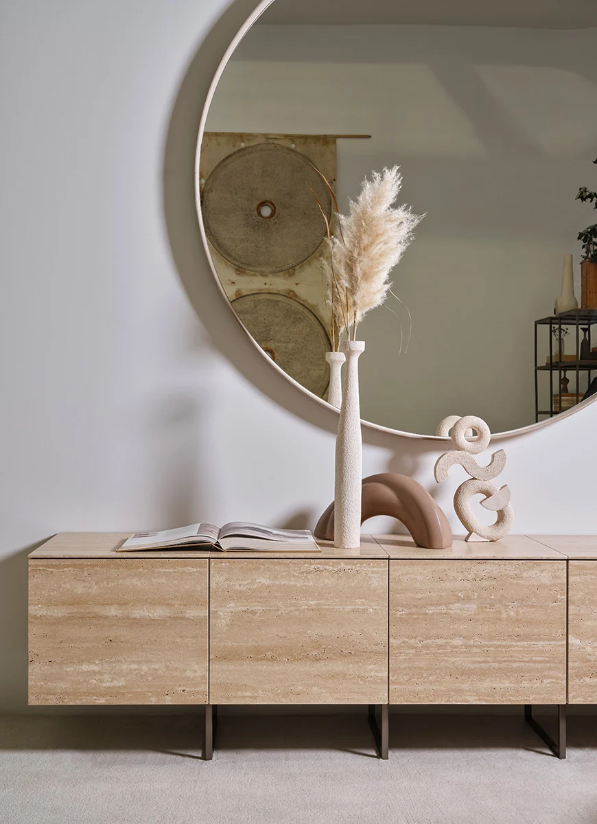 Meridiani steht für exzellente Materialqualität und handwerkliche Präzision. Auch das Sideboard Ruben überzeugt durch sorgfältig ausgewählte Materialien und eine hochwertige Verarbeitung. Die Oberflächen sind präzise ausgeführt und unterstreichen den exklusiven Charakter des Möbelstücks.