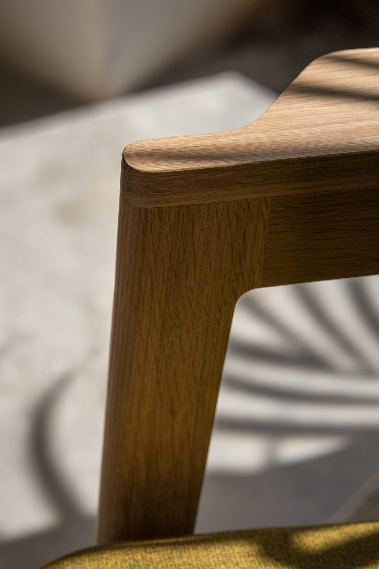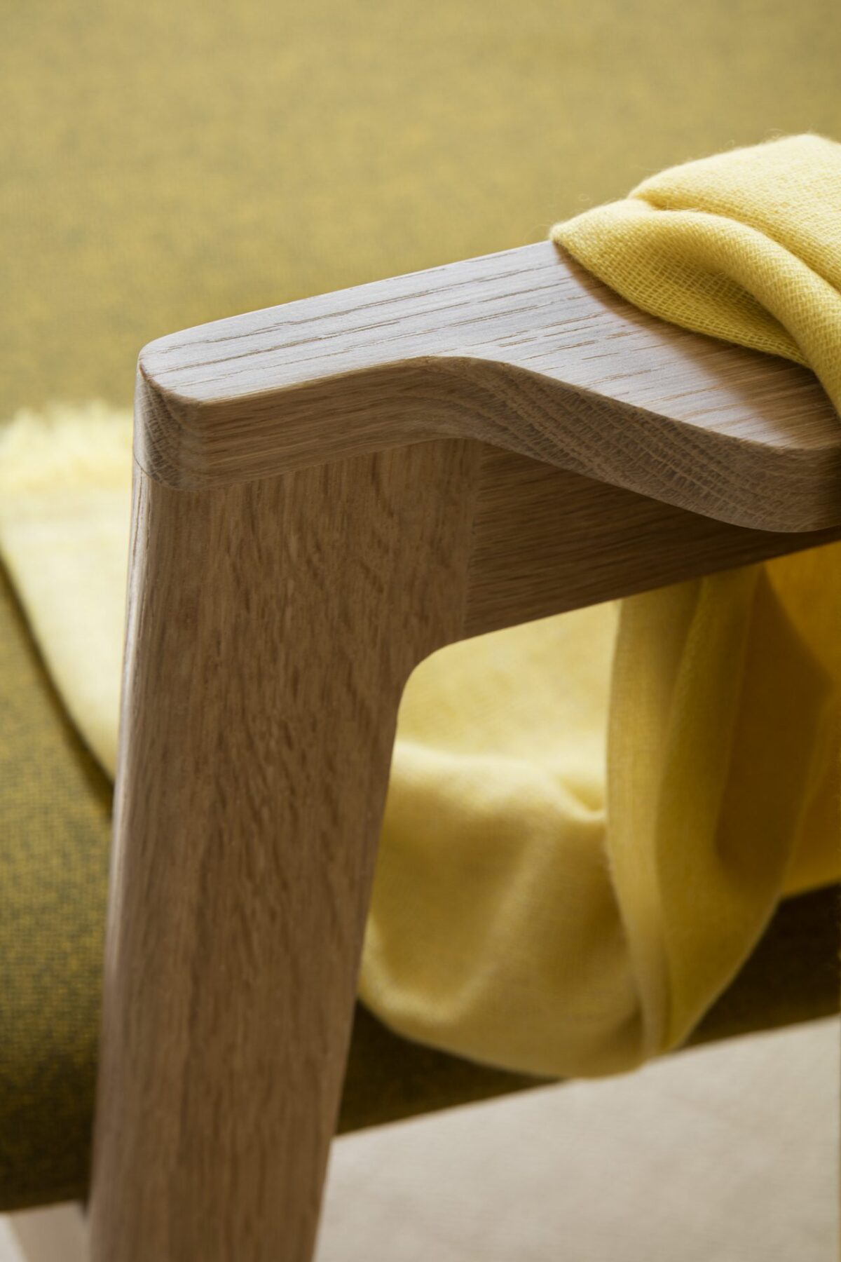 Mobles 114 fertigt den Sessel mit einem stabilen Holzunterbau. Je nach Kollektion stehen Varianten mit natürlich wirkender Holzoberfläche oder mit veredelten, schützenden Lackierungen zur Verfügung. Das Gestell trägt wesentlich zur eleganten, nordisch geprägten Anmutung bei und macht Danesa zu einem Sessel, der sehr gut mit modernen Designsofas, aber auch mit klassischen Sideboards und Regalen kombiniert werden kann.