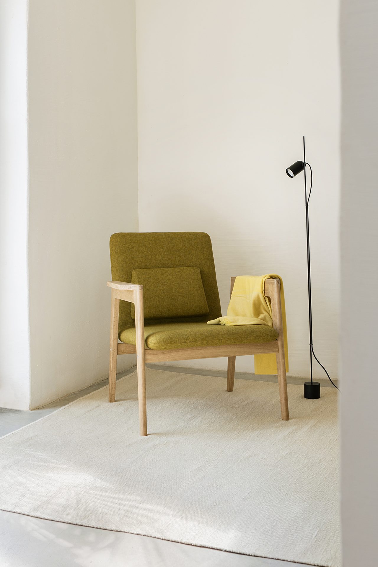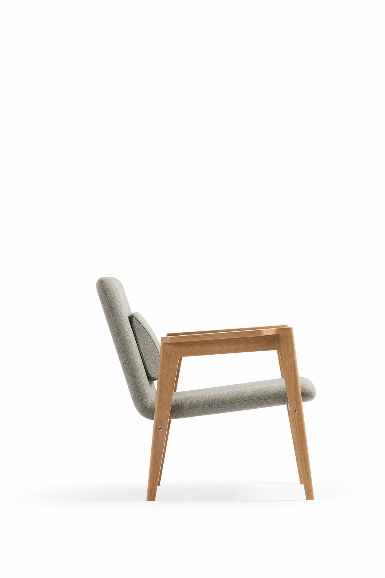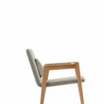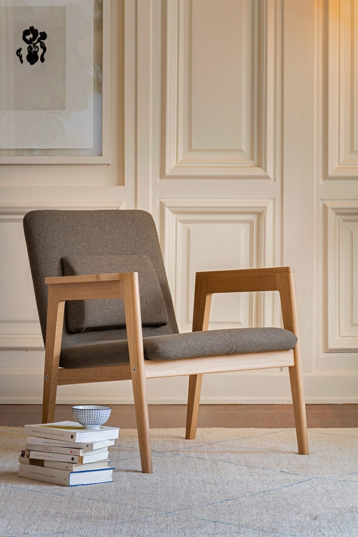 Charakteristisch für Danesa ist das sichtbare Holzgestell, das dem Sessel Leichtigkeit und Stabilität gibt. Die weiche, einladende Sitzschale liegt optisch auf dem Gestell auf und bildet mit der Rückenpartie eine harmonische Einheit. Die Proportionen sind so gewählt, dass man automatisch eine entspannte, leicht zurückgelehnte Sitzhaltung einnimmt – ideal zum Lesen, für den Empfangsbereich, für Hotellobbys oder einfach für die Wohnzimmerecke.