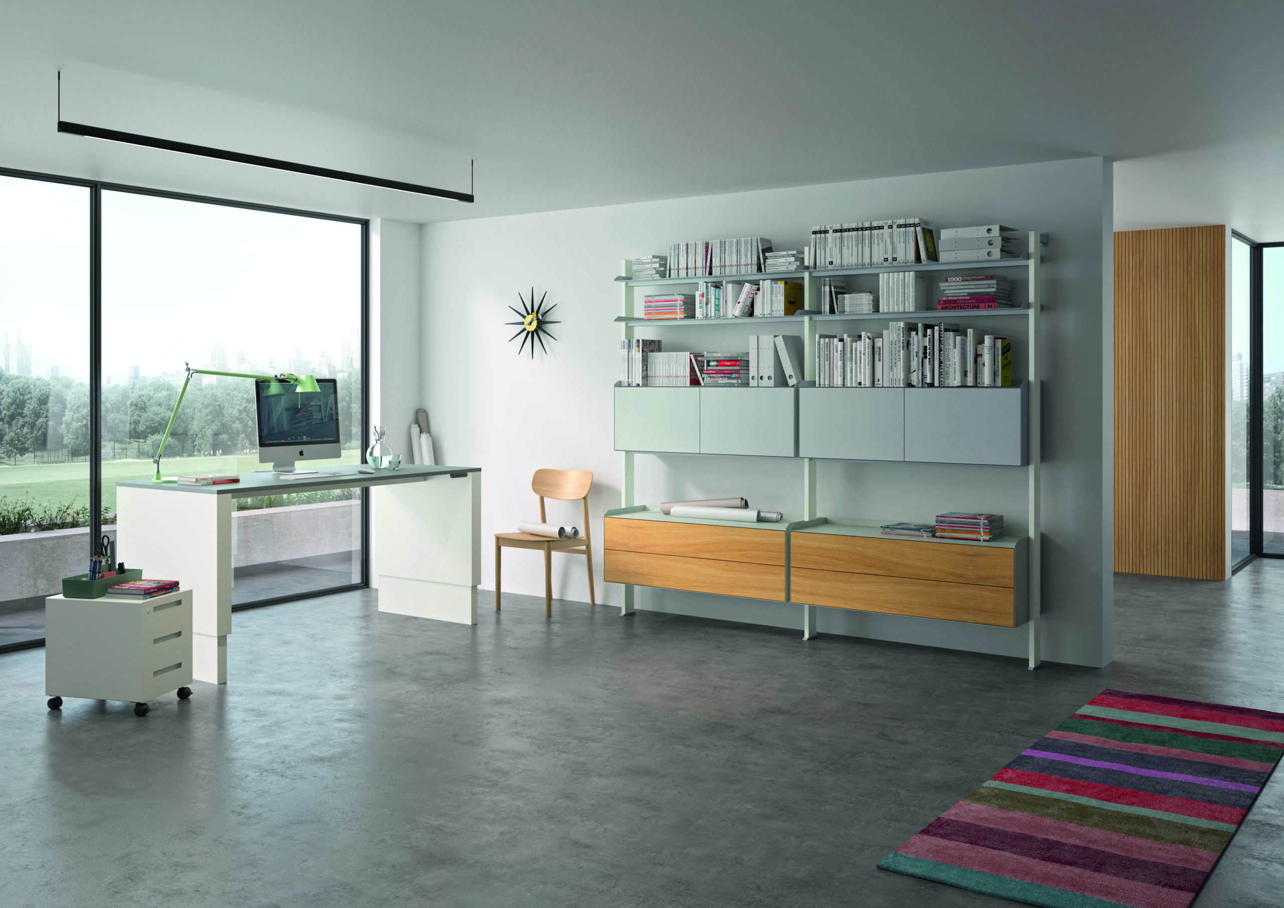 Design Kiste bietet Konfiguration, Farbberatung (RAL), Planung und auf Wunsch Montage. Wir kombinieren den Müller Möbelfabrikation Workspace mit Beleuchtung, Akustik und Stauraum – so entsteht ein individueller, ergonomischer elektrisch höhenverstellbarer Schreibtisch mit perfektem Kabelmanagement und stimmigem Look.