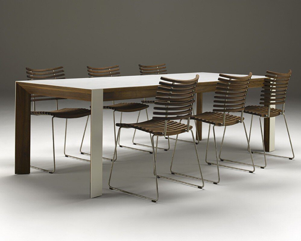Manchmal ist es ganz einfach so, dass man eine noch größere Fläche benötigt. Zum Glück ist der Tisch GM 7700 mit einer Butterfly-Verlängerungsplatte versehen. So ist es problemlos möglich, den Tisch zu verlängern. Sie haben auch die Wahl hinsichtlich des Holzes des Tisches. Sie könnten sich für helles Holz entscheiden. Oder Sie wählen dunkles Holz aus. Ist es ein Tisch aus dunklem Holz, gibt es einen besonderen Kontrast zur Tischplatte, die im weißen Corian gehalten ist. Entscheiden Sie sich für den massiven Designer Esstisch, darf es natürlich auch an hochwertigen Stühlen nicht fehlen. Von Naver gibt es auch praktische Stühle, die mit dem Tisch harmonieren. Wie wäre es denn mit den Stühlen Tiger, die sich ebenfalls durch ein besonderes Design abheben? Angeboten werden aber auch Stuhl Curve und Stuhl Stick. Runden Sie Ihre Essecke mit dem Tisch GM 7700 jetzt mit den eleganten und besonderen Stühlen ab.
