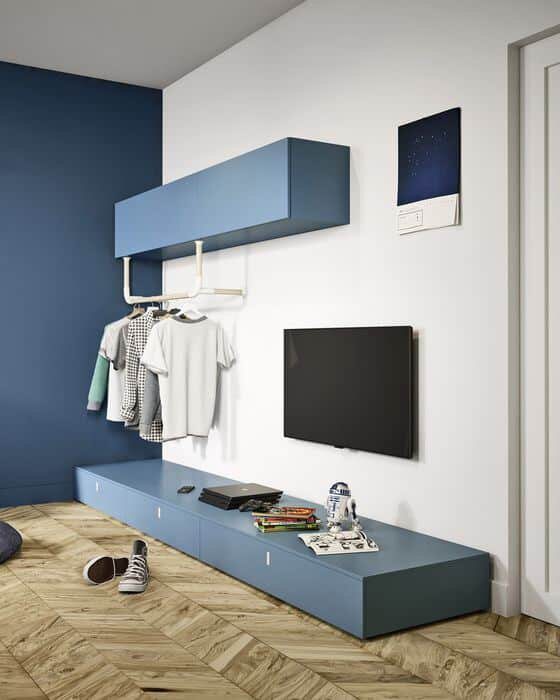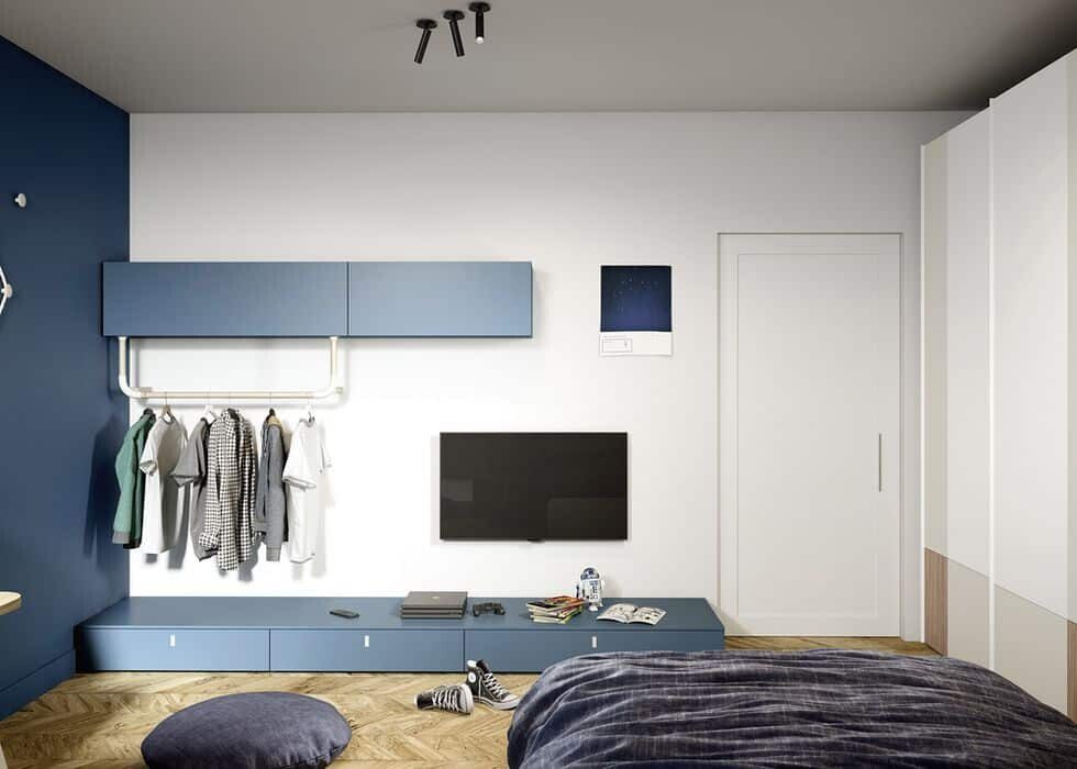Das Jugendzimmerbeispiele 2 ist nicht nur stilvoll, sondern auch besonders praktisch. Es verfügt über zahlreiche Stauraumlösungen wie Schränke, Regale und Schubladen, um Kleidung, Bücher und andere Gegenstände aufzubewahren. Das macht es zur perfekten Wahl für ein ordentliches und aufgeräumtes Jugendzimmer.