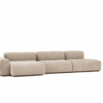 Durch sein modulares Konzept lässt sich das Norr11 Alpaca Sofa flexibel an unterschiedliche Raumgrößen und Bedürfnisse anpassen. Einzelne Elemente können individuell kombiniert werden, sodass sowohl kompakte Sofalösungen als auch großzügige Wohnlandschaften möglich sind.