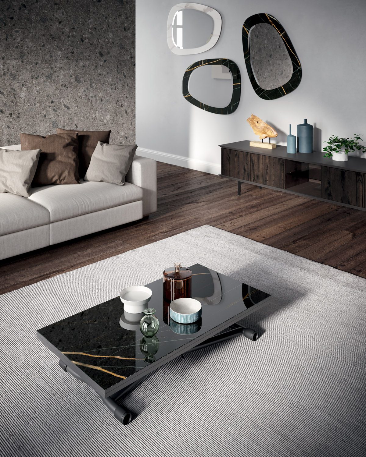 Typisch für Ozzio steht auch der Sydney Couchtisch für zeitloses italienisches Design. Die reduzierte Formgebung fügt sich harmonisch in verschiedenste Einrichtungsstile ein – von modern über minimalistisch bis hin zu gehobenem Wohnambiente. Dadurch lässt sich der Tisch ideal mit bestehenden Möbeln kombinieren.