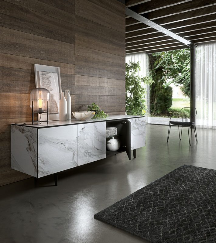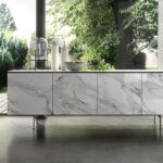 Das Design des Ozzio Armor Sideboards ist geprägt von klaren Linien und einer minimalistischen Ästhetik, die sich nahtlos in jede Inneneinrichtung einfügt. Das Sideboard besteht aus hochwertigen Materialien, die nicht nur langlebig und robust, sondern auch von außergewöhnlicher Schönheit sind. Die Oberfläche ist in verschiedenen Ausführungen erhältlich, um Ihren individuellen Stil widerzuspiegeln.