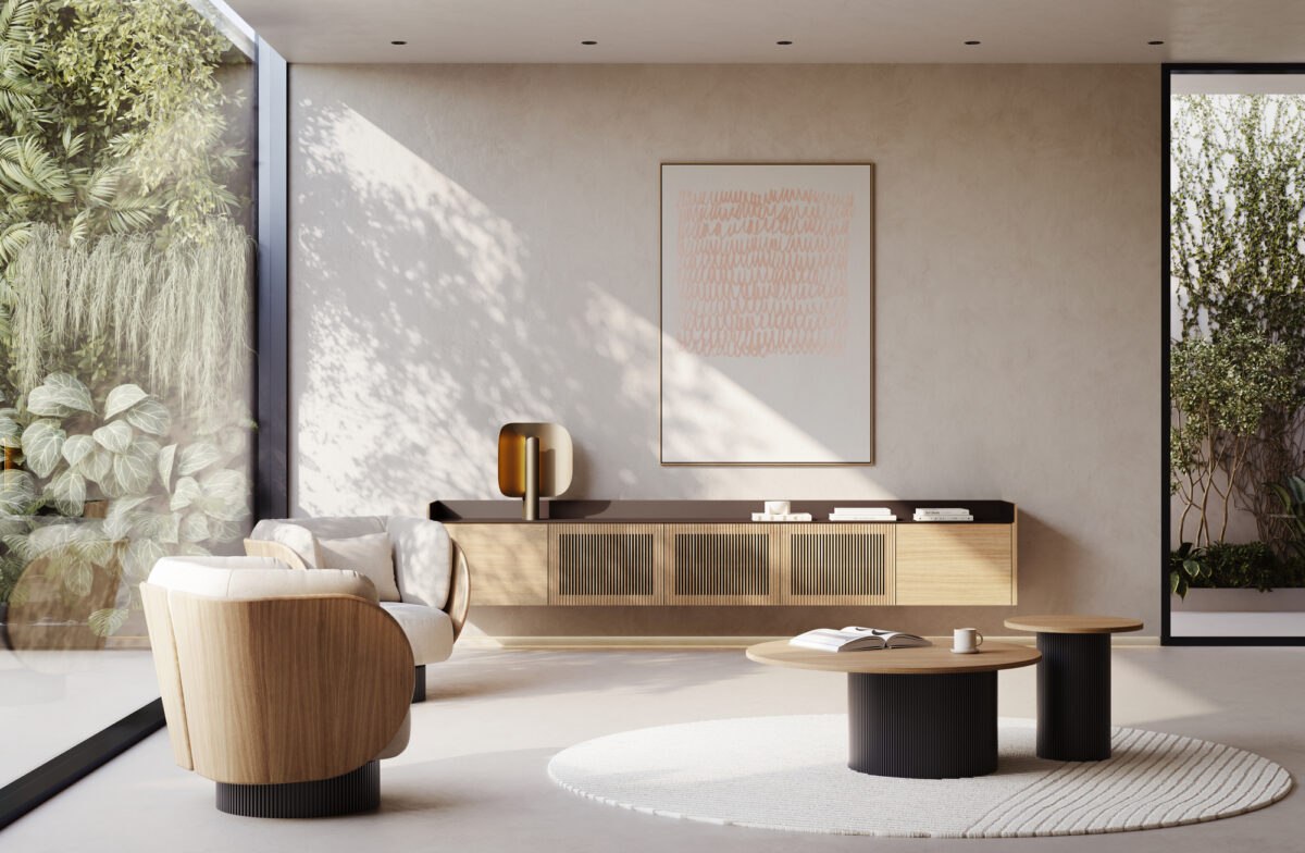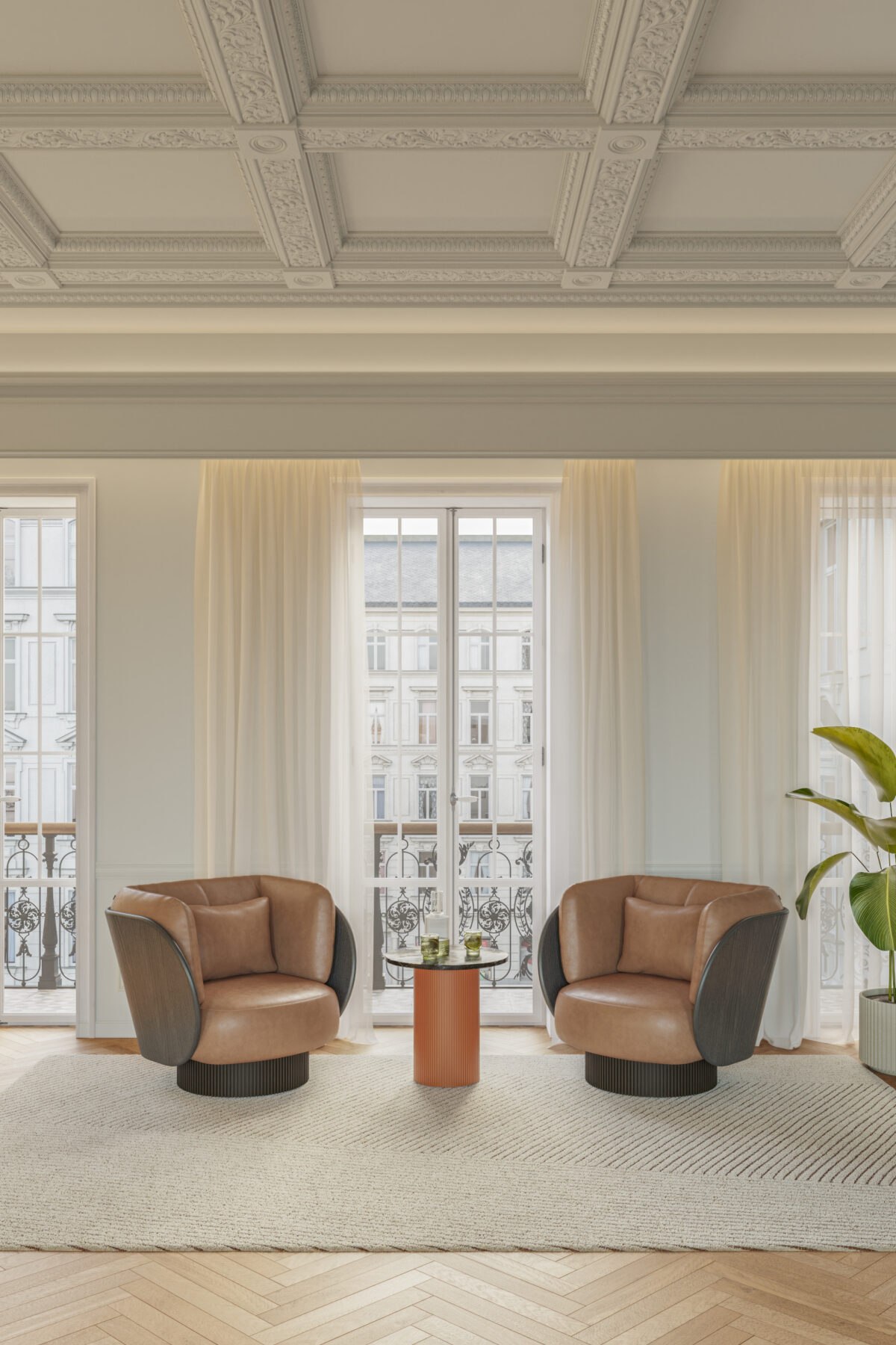 Die Drehfunktion unterstützt flexible Sitzpositionen, ohne Raumwirkung zu stören.