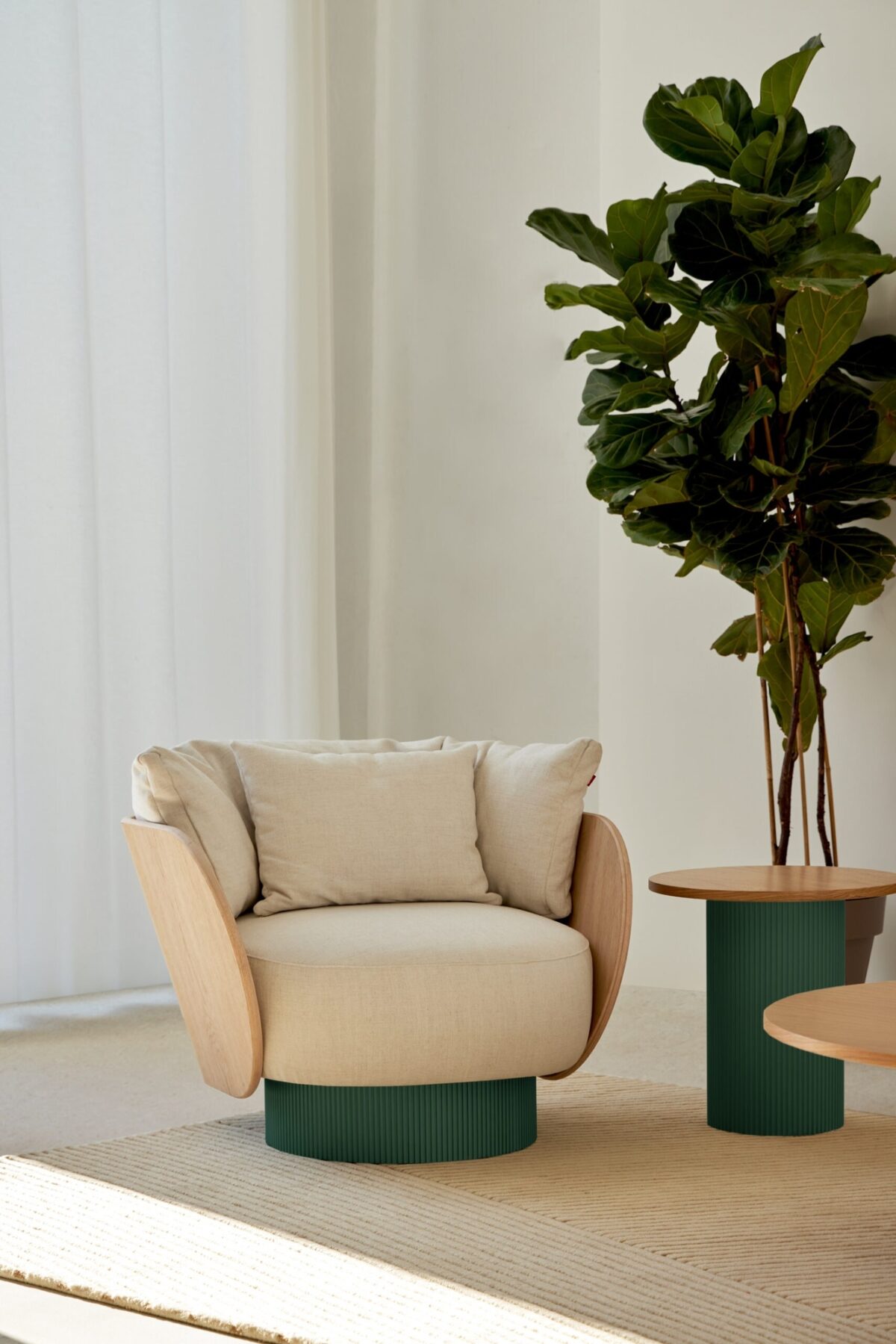 Der Dune Lounge-Sessel bietet eine ergonomisch durchdachte Sitzhöhe und großzügige Sitzfläche für entspanntes Sitzen über Stunden. Durch sein modernes, organisches Design passt er in unterschiedlichste Wohnbereiche: