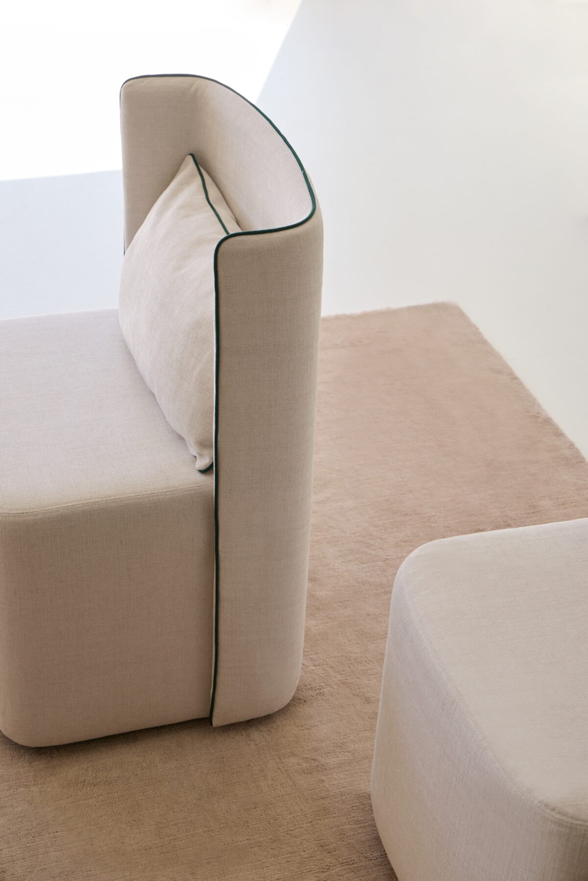 Das Besondere am Corte ist seine Silhouette. Mario Ruiz hat eine Form geschaffen, bei der die Grenzen zwischen Gestell und Polsterung verschwimmen. Die geschwungene Rückenlehne wirkt wie eine sanfte Umarmung und bietet einen ergonomischen Halt, der auch langes Sitzen zum Vergnügen macht.