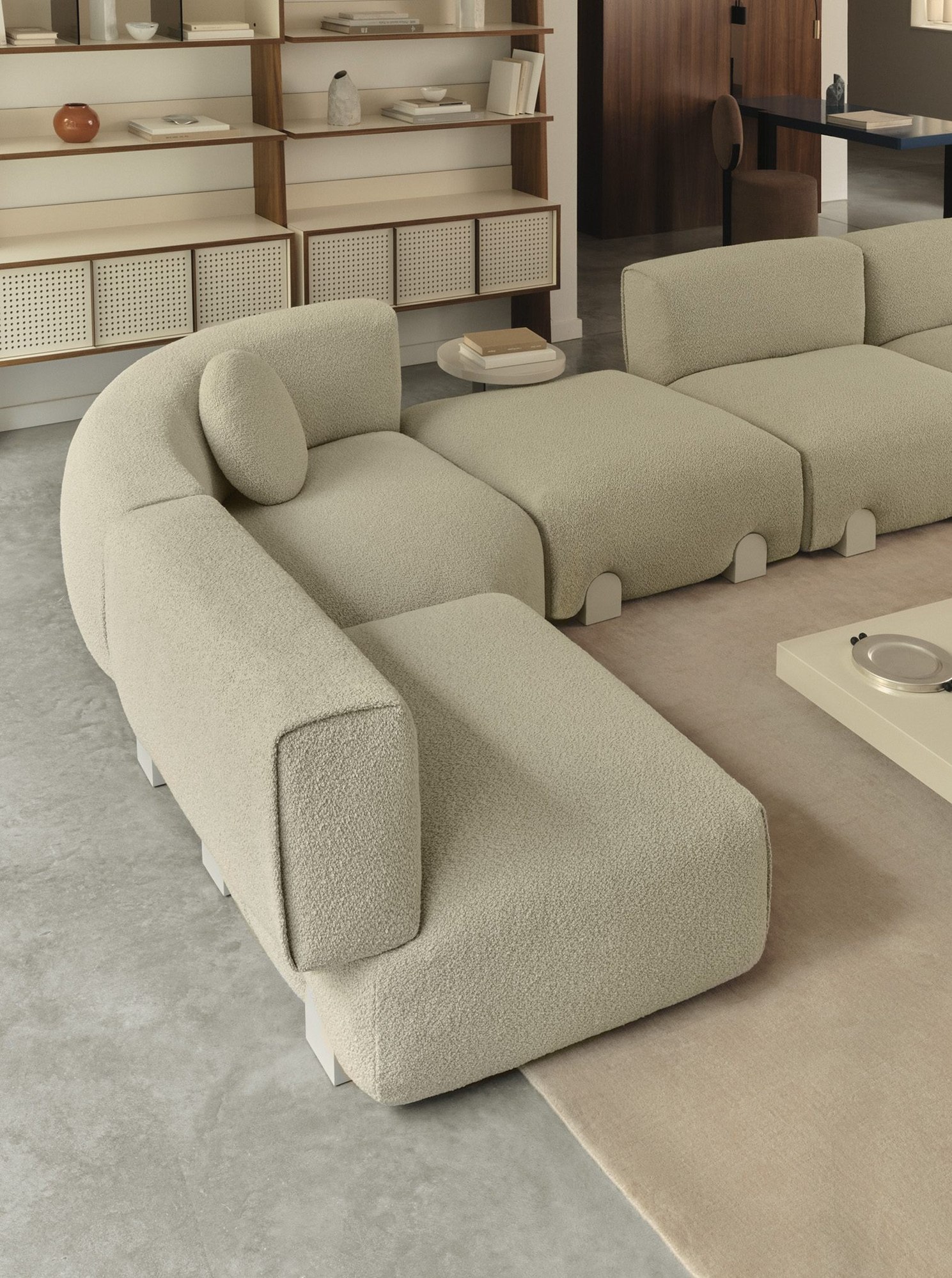 Als modulares Sofa bietet Simposio vielfältige Konfigurationsmöglichkeiten. Unterschiedliche Elemente lassen sich individuell kombinieren – von klassischen 2- oder 3-Sitzer-Lösungen bis hin zu großzügigen Wohnlandschaften. Dadurch eignet sich das Sofa sowohl für kompakte Räume als auch für weitläufige Wohnbereiche. Die modulare Struktur ermöglicht eine präzise Anpassung an Grundriss, Raumgröße und persönliche Anforderungen.