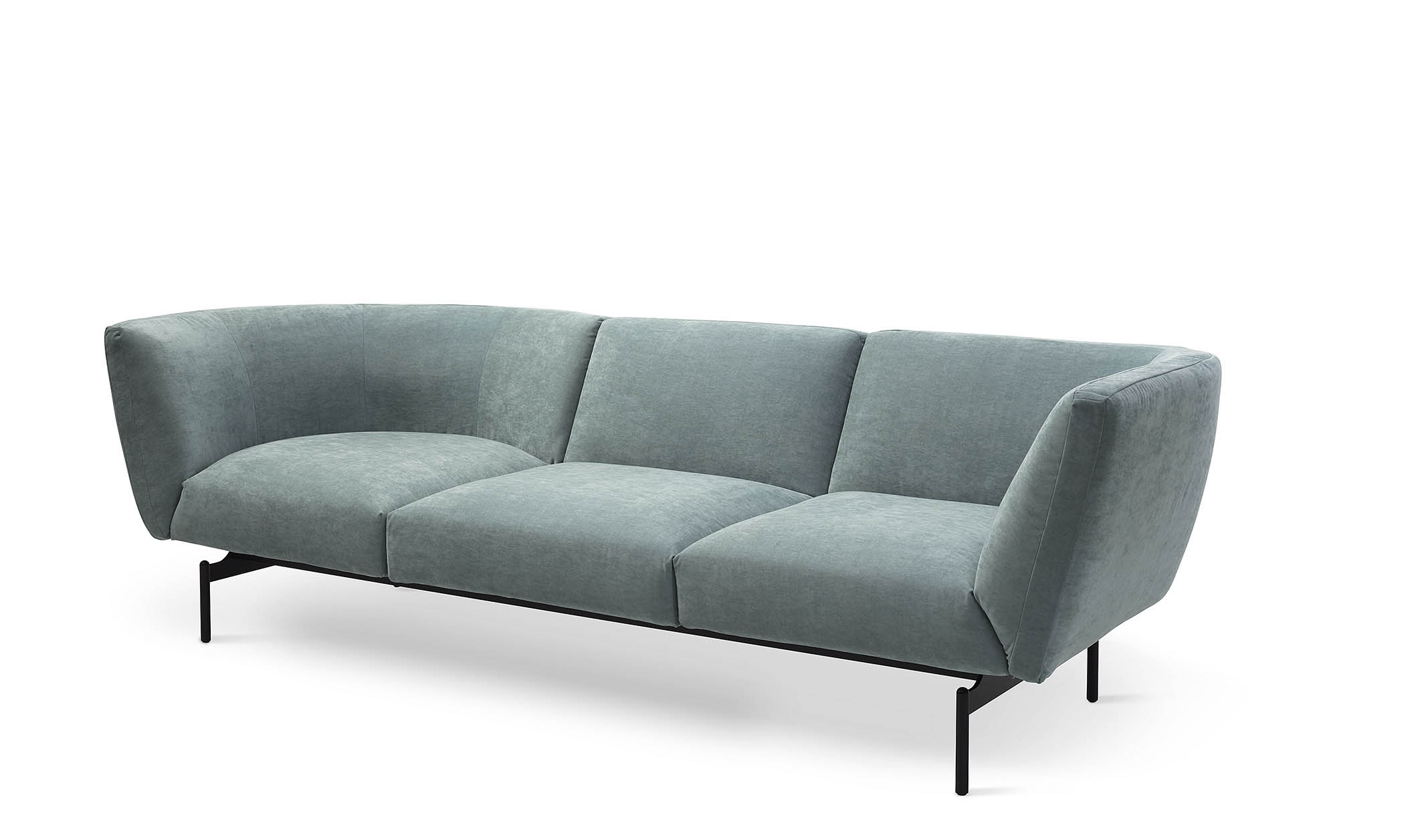 Die Kombination aus klaren Linien und sanft geschwungenen Konturen verleiht dem Sofa eine moderne, zeitlose Ästhetik, die sich harmonisch in verschiedenste Einrichtungsstile einfügt – von klassisch-elegant bis modern-minimalistisch.